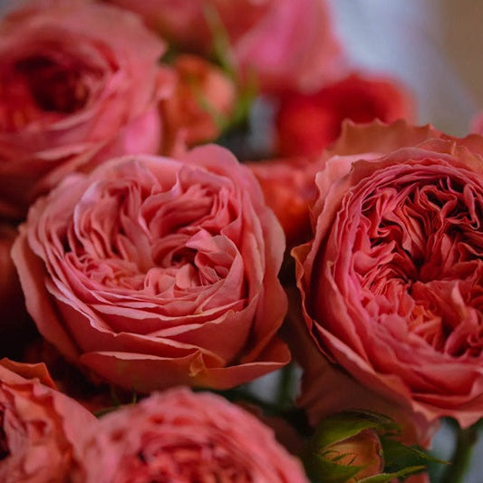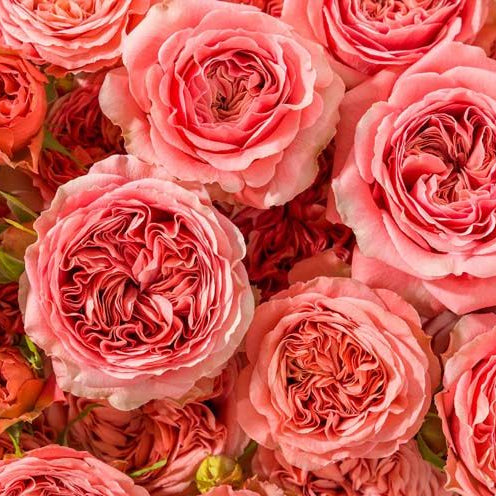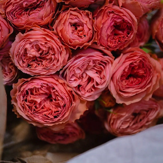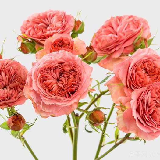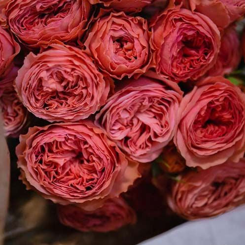 A cut rose variety, Bella Trendsetter features beautiful orange-red flowers (the lower the temperature, the deeper the color) with a diameter ~3 inch, blooming repeatedly through seasons, opening in clusters, with a long flowering period (vase life ~10 days). The flowers are cup-shaped with a light and pleasant fragrance. The plant grows to ~2.5 ft tall, with a compact and dense form and it is heat and disease resistant.