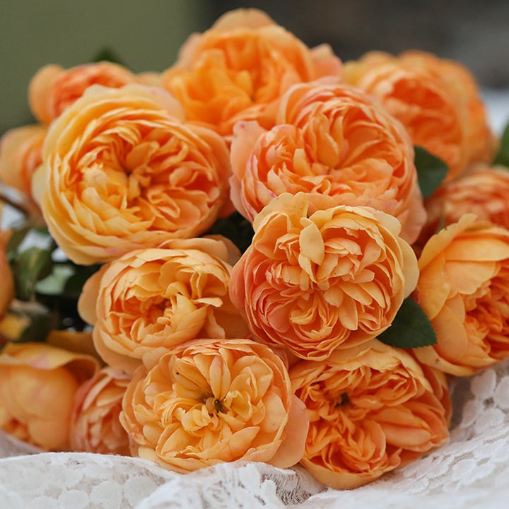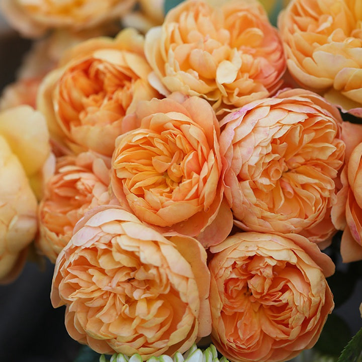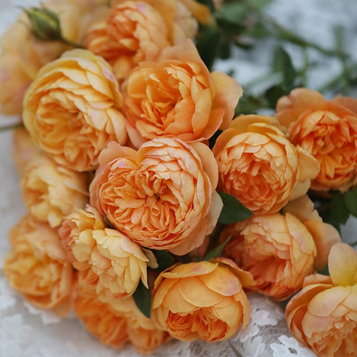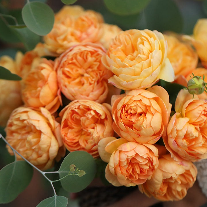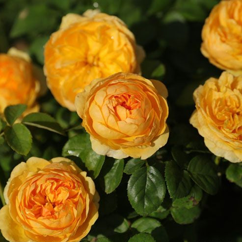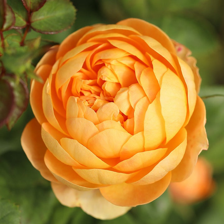 A newly developed (year 2021) miniature rose, Zhuji has flowers ~3 inch in diameter which would turn from orange-yellow to golden yellow as they age. It blooms repeatedly through seasons, is prolific, produces a large number of flowers, each flower lasts 5-7 days, has a light tea fragrance, grows to 1-2 ft tall, has a compact shape, is heat tolerant, and can be planted in small spaces.